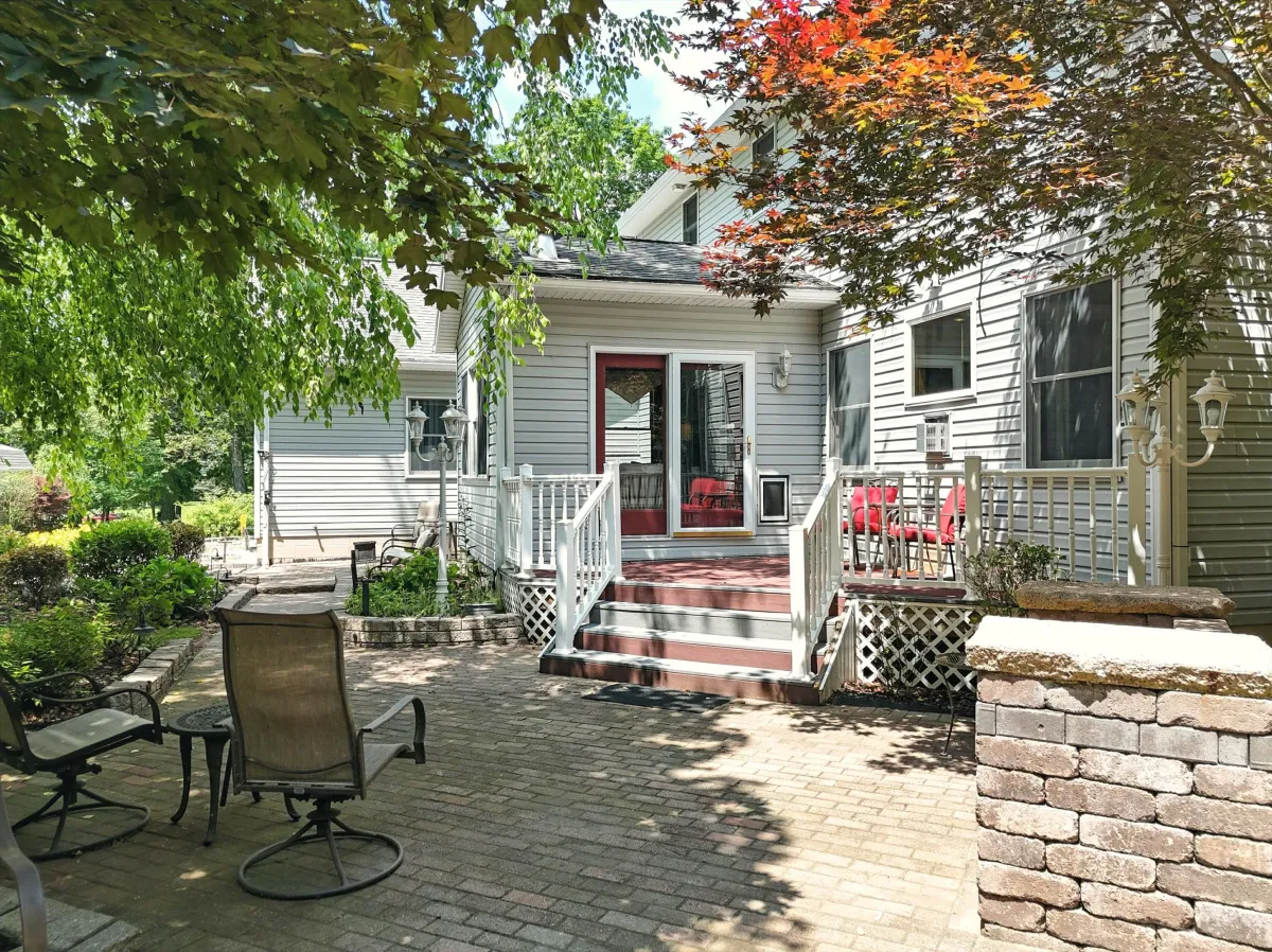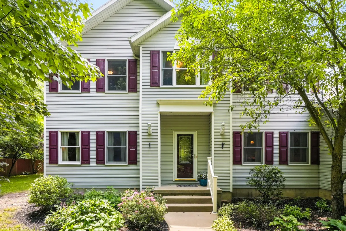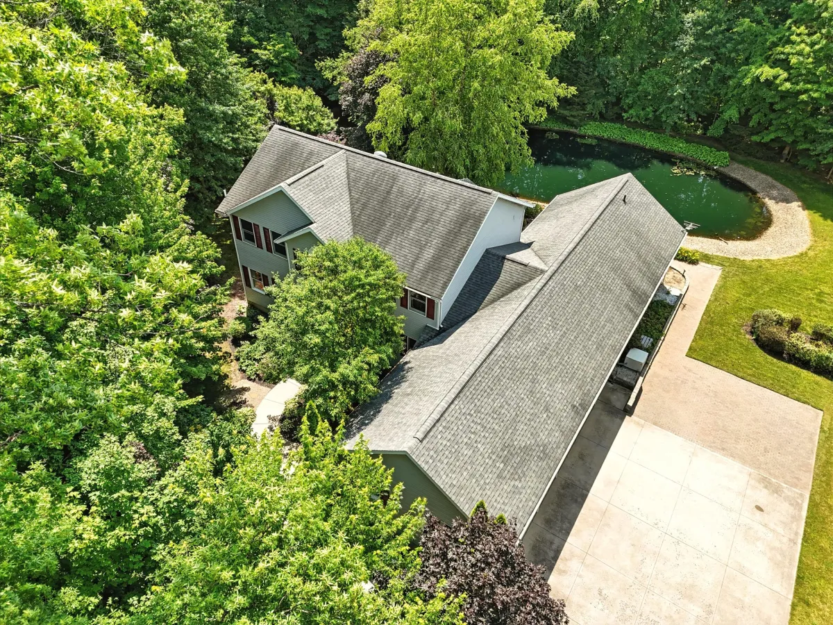 This beautifully maintained Colonial offers a peaceful setting with luxurious updates and thoughtful design throughout. As you step inside, you’re greeted by Brazilian Cherrywood flooring that flows through several main living spaces, setting a warm and elegant tone. The open-concept kitchen is a standout, featuring a striking marble island, granite countertops, and custom cabinetry. It seamlessly connects to both the cozy living area and a stunning four-season sunroom. The sunroom is the perfect space to relax by the fireplace while enjoying tranquil views of the stocked pond just outside. From here, step onto your immaculate brick patio, complete with a built-in fireplace, ideal for outdoor entertaining or quiet evenings under the stars.