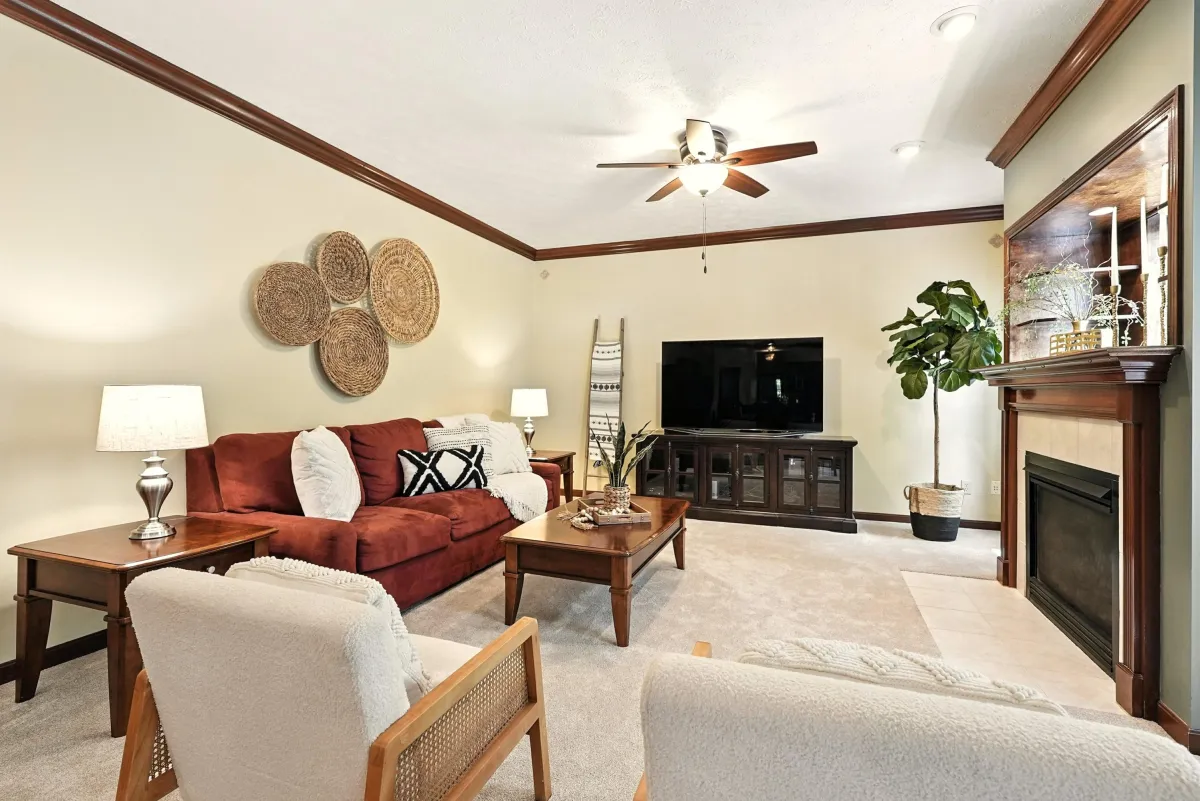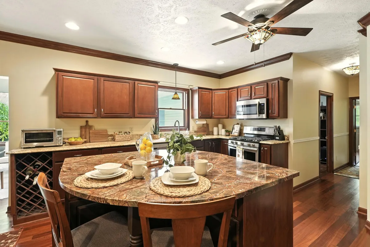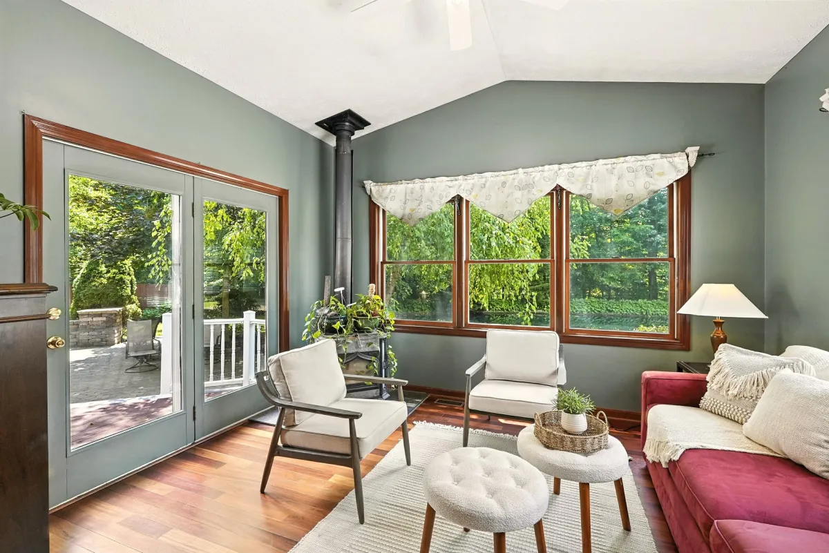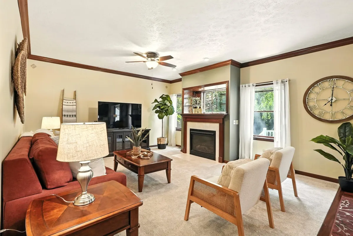This beautifully maintained Colonial offers a peaceful setting with luxurious updates and thoughtful design throughout. As you step inside, you’re greeted by Brazilian Cherrywood flooring that flows through several main living spaces, setting a warm and elegant tone. The open-concept kitchen is a standout, featuring a striking marble island, granite countertops, and custom cabinetry. It seamlessly connects to both the cozy living area and a stunning four-season sunroom. The sunroom is the perfect space to relax by the fireplace while enjoying tranquil views of the stocked pond just outside. From here, step onto your immaculate brick patio, complete with a built-in fireplace, ideal for outdoor entertaining or quiet evenings under the stars.